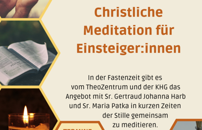 In Anlehnung an die Spiritage gibt es für Studierende in der Fastenzeit die Möglichkeit im Theozentrum in kurzen Zeiten der Stille gemeinsam zu meditieren.
