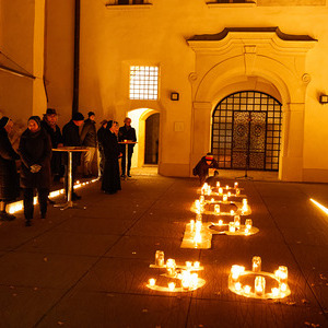 Im Brunnenhof der Stadtpfarre Graz erstrahlte ein mit Kerzen geformter COP30-Schriftzug. Die brennenden Kerzen leuchteten für gute Entscheidungen im Sinne aller Menschen, Nationen, Religionen und Völker - auch der Armen, Kranken, Unterdrückten, Schwachen und nachfolgenden Generationen, die am meisten unter der Klimakrise leiden (werden).