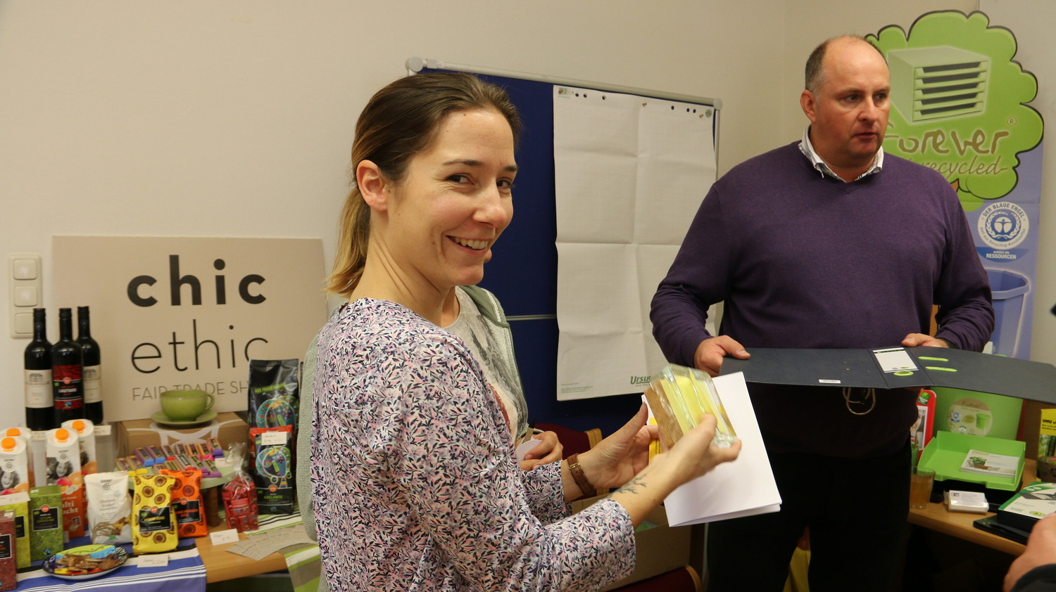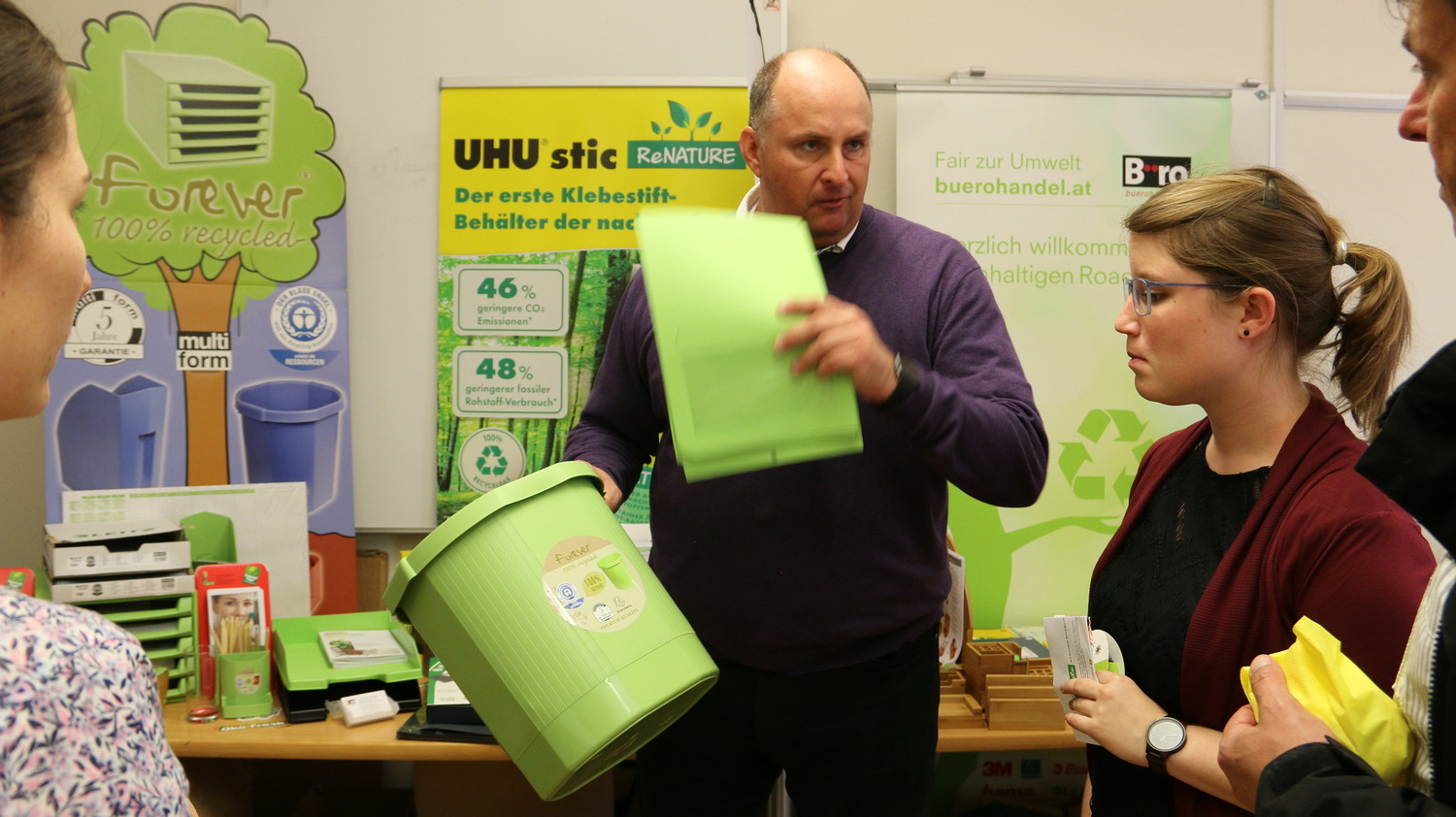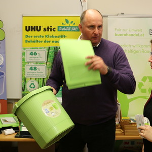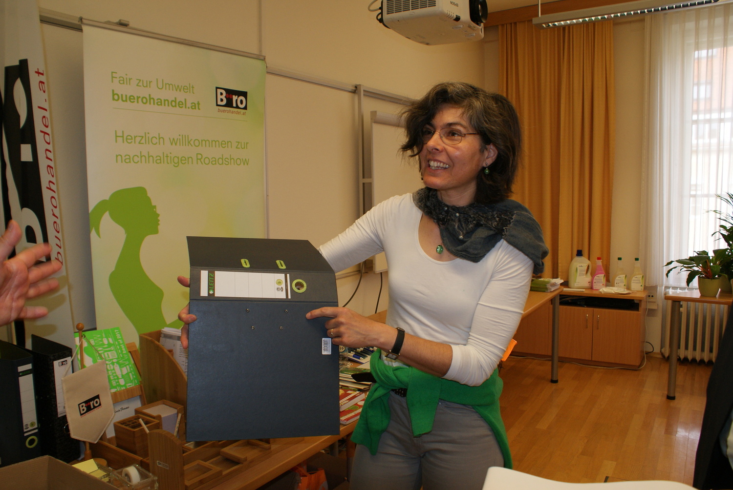 Wir haben jene nachhaltigen Büroartikel gezeigt, die über HandOver zu beziehen sind, besonders von den Firmen Bürohandel und ab 1. Mai neu: for4you. Danke an Herrn Grossegg, Herrn Lang und Frau Hutzler!