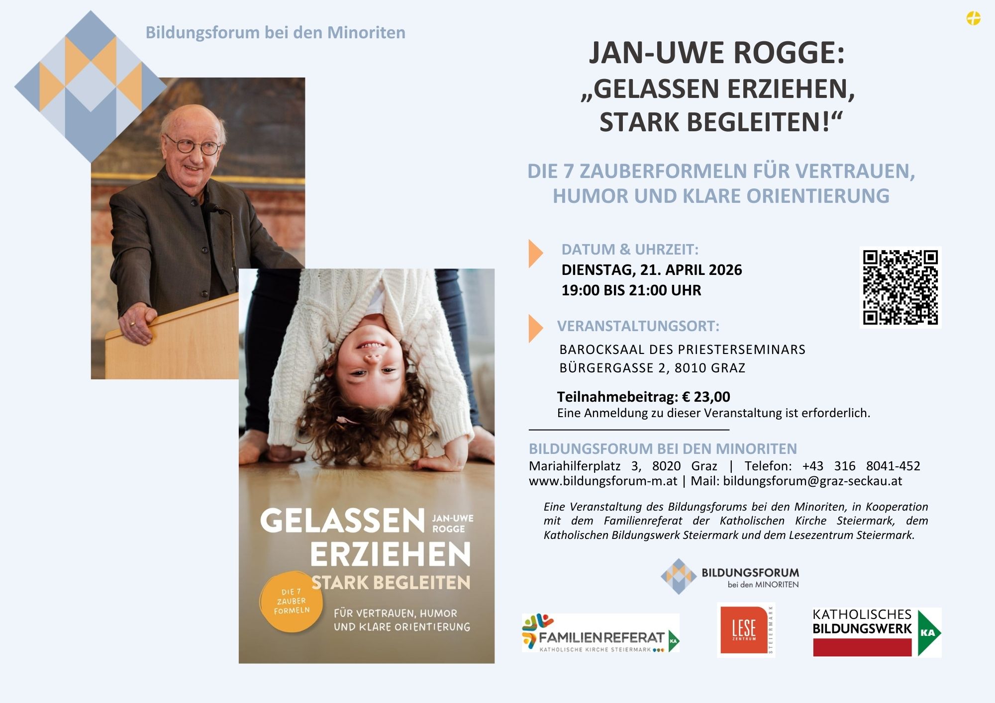 Eine Veranstaltung des Bildungsforums bei den Minoriten, in Kooperation mit dem Familienreferat der Katholischen Kirche Steiermark, dem Katholischen Bildungswerk Steiermark und dem Lesezentrum Steiermark.