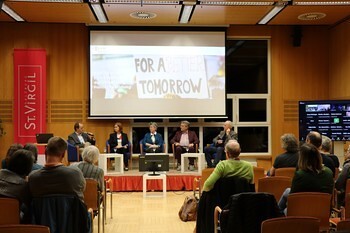Das Symposium wurde vom Bildungsforum bei den Minoriten organisiert und in Kooperation mit Katholische Arbeitnehmer:innenbewegung Steiermark, KULTUM, Katholische Aktion Steiermark, Katholische Hochschulgemeinde Graz, Bischöfliches Amt für Schule und Bildung, Ludwig Boltzmann Institut für Kriegsfolgenforschung, Generation plus - Grüne Seniorinnen sowie Zukunft braucht Erinnerung durchgeführt. Wir bedanken uns beim Amt der Bürgermeisterin der Stadt Graz für die Kulinarik sehr herzlich.