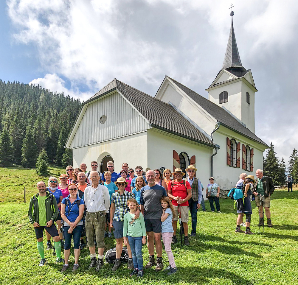 Die Bergmesse auf der Gleinalm zu Maria Schnee haben einige Mariazell-Geher sowie Pfarrgemeinderäte genutzt, um im Gedenken an die, erst kürzlich, verstorbene Ulrike Stampler, eine Wallfahrt zu unternehmen. Pfarrer Horst Hüttl und Prof. Schlacher zelebrierten eine wunderschöne Gedenkmesse, wobei Herr Pfarrer Hüttl einen eindrucksvollen Bogen von der Lesung über das Evangelium bis hin zur Predigt spannte, indem er das Wirken und Leben von Uli mit einbezogen hat. Es war ein wunderschöner Tag der Gemeinsamkeit, wobei eine Verbundenheit mit jenen Personen herrschte, die auf anderen Pfaden unterwegs waren, indem alle unsere Uli in unseren Herzen mitgetragen haben.