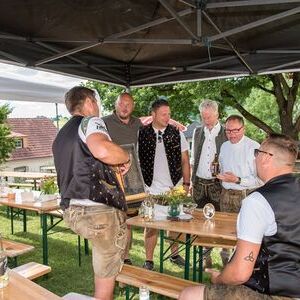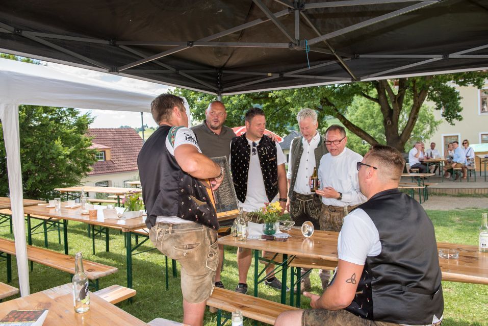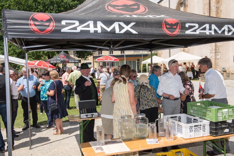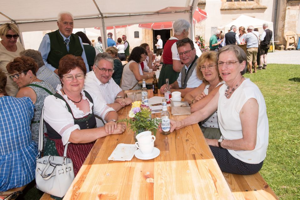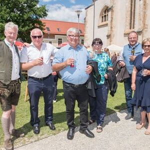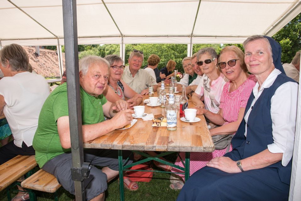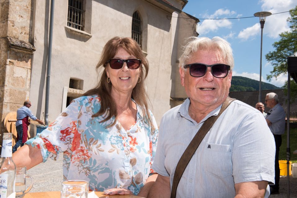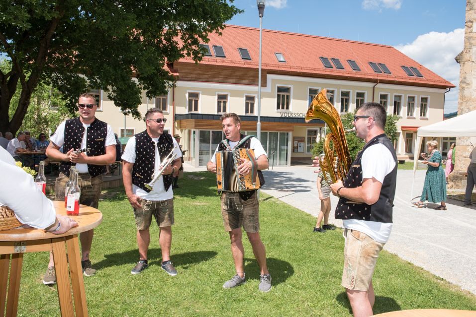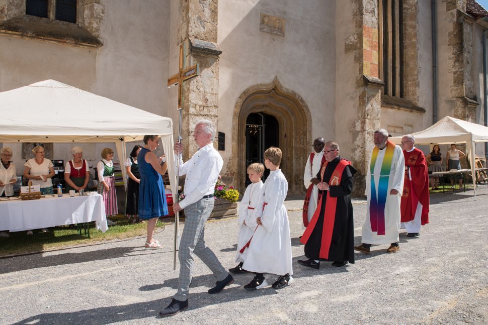 Gesellig ging es vor der Kirche weiter: Kühle Getränke halfen bei der hohen Temperatur, Frankfurter, Aufstrichbrote und Kuchen gegen den Hunger, außerdem war unter anderem für musikalische Unterhaltung gesorgt. Insgesamt war dieses Startfest eine Premiere:  Die sieben Pfarren Röthelstein, Frohnleiten mit Adriach, Übelbach, Deutschfeistritz mit Peggau, Stübing, Gratkorn und Semriach haben Messfeier und Fest miteinander und gemeinsam vorbereitet und organisiert.  Der Start in die Zukunft Kirche bei uns ist gelungen!