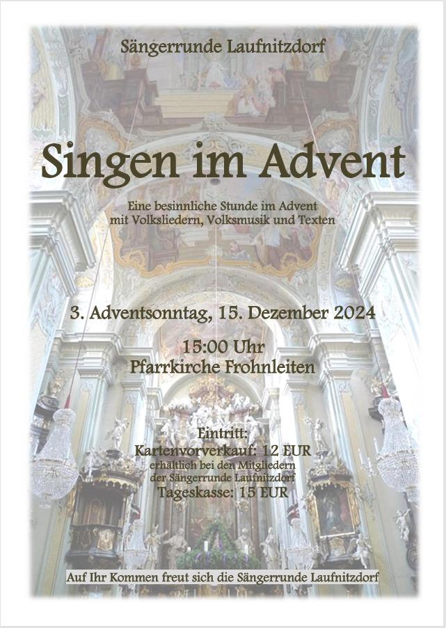 Singen im Advent mit der Sängerrunde Laufnitzdorf am 3. Adventsonntag 15. Dezember um 15:00 Uhr