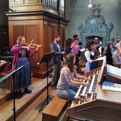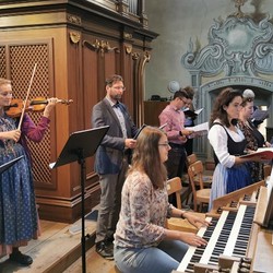 Wir konnten die „Missa in B“ (KV 275) von Wolfgang Amadeus Mozart wie geplant zur Aufführung bringen, allerdings in stark verkleinerter Besetzung: ungefähr der halbe Chor musizierte zusammen mit dem Solistenquartett Birgitta Wetzl, Elisabeth Weber, Markus Sölkner und Ewald Nagl das schwungvolle Werk in Begleitung eines Streichtrios unseres Orchesters und mit Christina Eichberger an der Orgel. Die feiernde Gemeinde und wir Ausführende selbst hatten große Freude an den schon so lange vermissten feierlichen Klängen einer Chor-Orchester-Messe!
