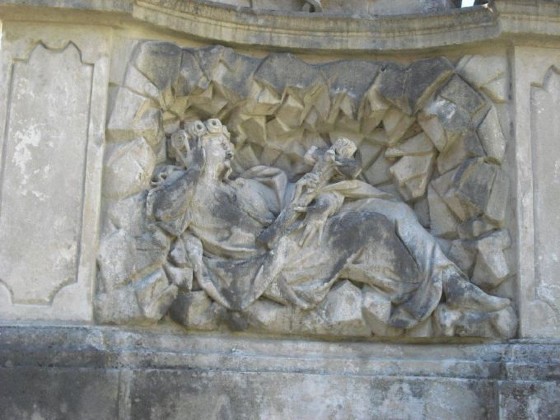 An der Rückseite der Mariensäule stehen zwei lateinische Inschriften, die man so übersetzen kann: