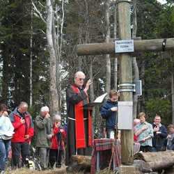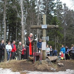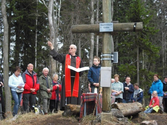 An der stimmungsvollen Einweihung des schönen Gipfelkreuzes durch Pfarrer P. Simon Orec nahmen am 20. April 2013 – fast genau 12 Jahre nach der Errichtung – bei schneebedecktem Boden und idealen Wanderwetter rund 150 Gläubige, darunter viele Kinder und Jugendliche, aus den angrenzenden Gemeinden Semriach, Schrems und Frohnleiten, teil. Am Beginn wurde wurde das bekannte Volksmissionslied „Heilges Kreuz, sei hoch verehret...“ gesungen und nach der Segnung des Gipfelkreuzes wurde ein Dankgottesdienst unter großer Anteilnahme gefeiert.