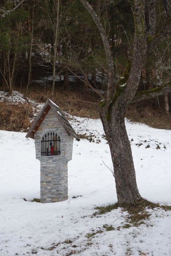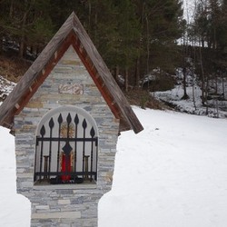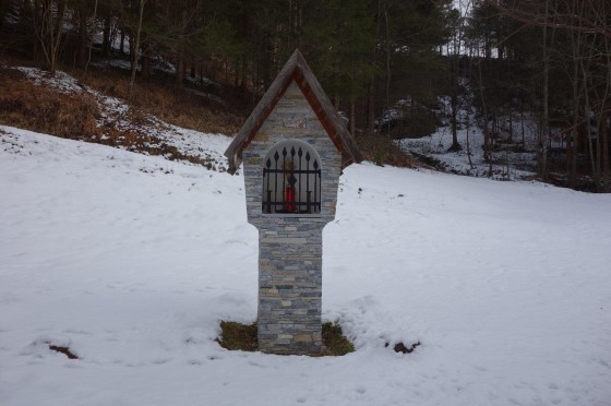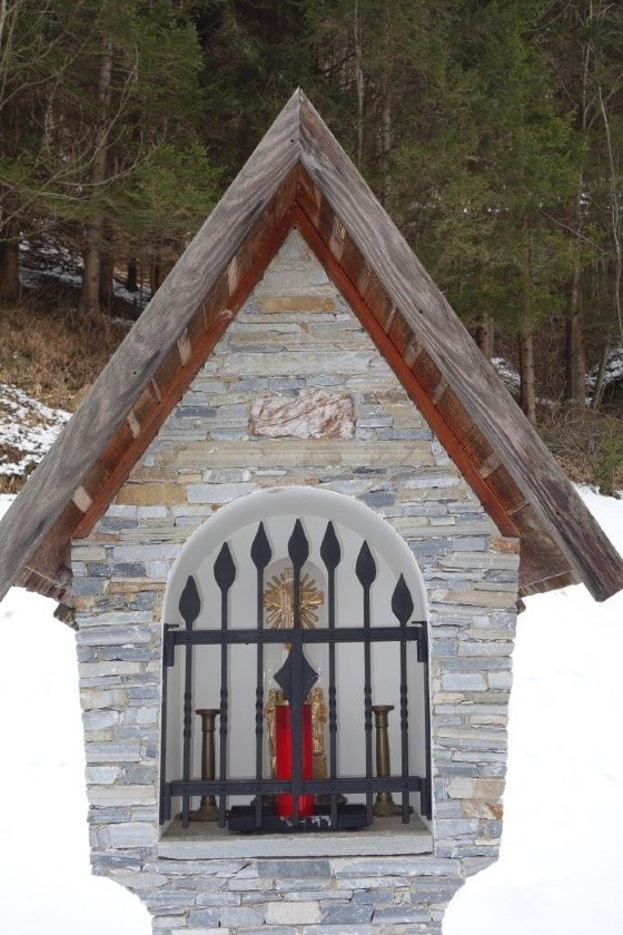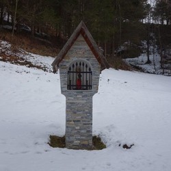 Dieses schöne Zeichen des Glaubens steht auf dem Grundstück einer Zuhube in der Schrems. Nach einer schweren Erkrankung gelobte der Besitzer Norbert Haidinger vulgo Salitrer, nach seiner Genesung im Jahre 2000 dort einen Bildstock zu errichten.