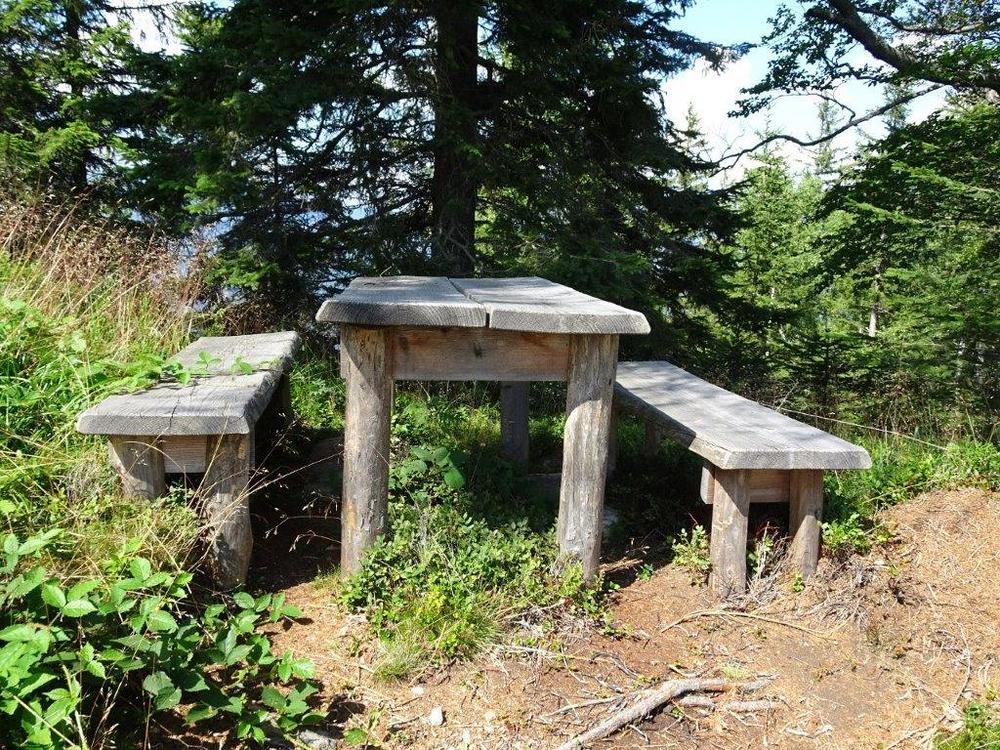 Familie Helmut Schrottner ist es auch, die in unmittelbarer Nähe des Gipfelkreuzes einen stabilen Holztisch mit zwei Holzbänken aufgestellt hat. Diese laden die Menschen zur Rast ein, zum Verweilen in schöner Natur und zur Besinnung. Es könnte dieser Ort aber auch eine Motivation für ein Gebet oder eine kleine Andacht sein!