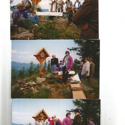 Die Segnung nahm im Rahmen einer Gipfelmesse Pater Simon Orec mit rund 100 Messbesuchern vor. Großer Dank gebührt den Pfarrbewohnern Josef Affenberger für die Durchführung der erforderlichen Holzarbeiten, es war damals bereits sein sechstes Gipfel- oder Marterlkreuz, sowie Walter Kögler für die Bewerkstelligung der schwierigen Maurerarbeiten auf dem felsigen Plateau und dem Ehepaar Gabriele und Peter Prietl vulgo Fuchs, Hofamt 26, auf deren Grund das Gipfelkreuz errichtet werden konnte.