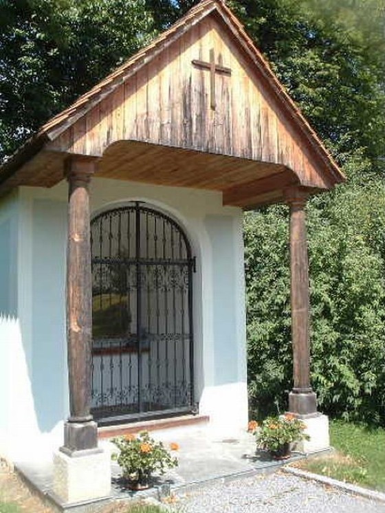Die ehrwürdige Kapelle im Bereich der Forstdirektion Mayr-Melnhof Frohnleiten wurde im Jahre 1998 von den dankbaren Mitgliedern der Zweigstelle Frohnleiten des Steirischen Jagdschutzvereins (JSV) unter dessen Obmann Ing. Hubert Platzer errichtet. Gewidmet wurde sie dem frommen Gedenken an Franz Freiherrn von Mayr-Melnhof-Saurau (1949-1993) und dessen Mutter Marie Gräfin Goess-Saurau (1921-1996), Trägerin des goldenen Ehrenringes der Steirischen Landesjägerschaft. Ihrer beider Streben und Wirken galt der Erhaltung von Wald, Wild und Natur. Die Pflege der guten steirischen Jagdtradition war ihnen ein ganz besonderes Anliegen. Daran erinnert heute eine seitlich im Innenraum angebrachte und wunderschön gestaltete Gedenktafel.