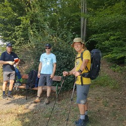 Am zweiten Tag führte uns der Weg - alle gut beschirmt (siehe Foto) - bei nassfeuchtem Wetter weiter nach Gamlitz. An der Ratscher Weinstraße überquerten wir die Staatsgrenze nach Sveti Kungota. Die Nächtigung erfolgte in Marburg.