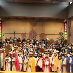 Tina Fegerl hat mit den Kindern in vielen Proben wieder ein tolles Krippenspiel einstudiert und eine besinnliche Andacht vorbereitet. Musikalisch begleitet wurde es von einer Bläsergruppe von klein bis groß.