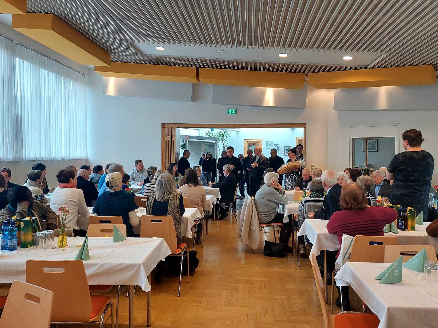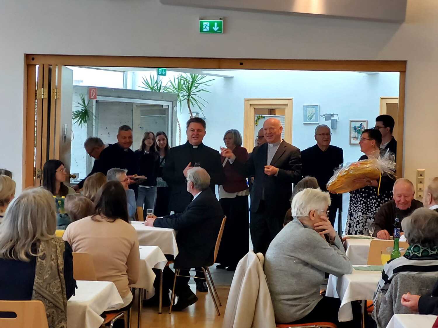 Im Anschluss an den Festgottesdienst waren alle Gäste, darunter auch zahlreiche aus Murau, zu einem gemeinsamen Essen in den Lazarussaal St. Oswald eingeladen. Über 100 Personen folgten dieser Einladung und nutzten die Gelegenheit zu persönlichen Begegnungen, Gesprächen und zum gemeinsamen Feiern. Die herzliche Atmosphäre zeigte die große Wertschätzung, die Vikar Solomes in der Pfarrgemeinde und darüber hinaus erfährt.