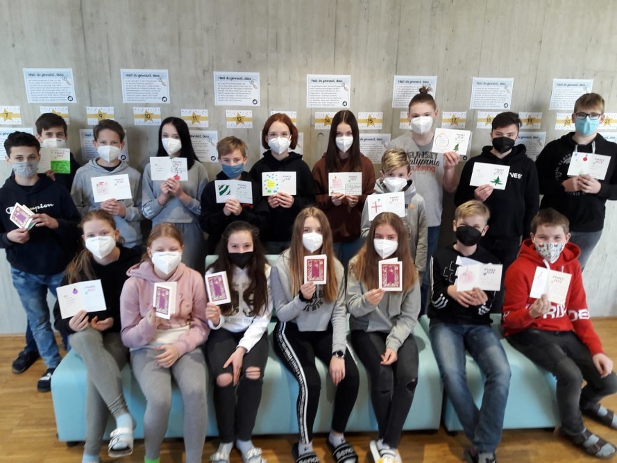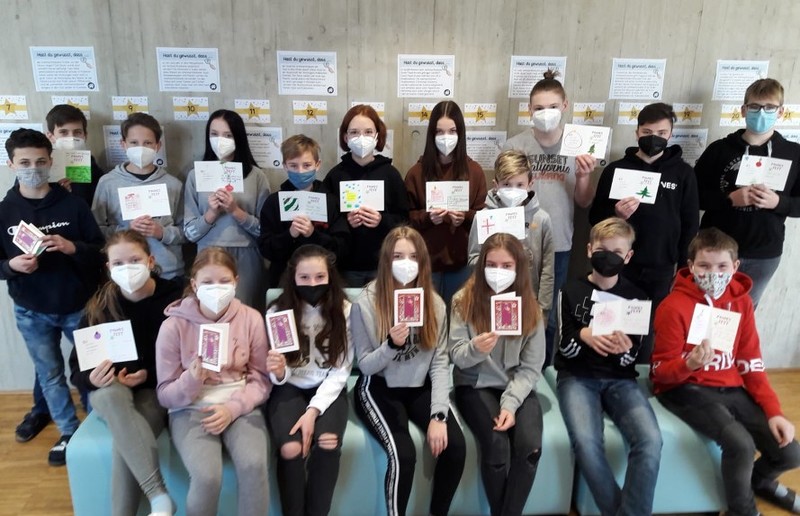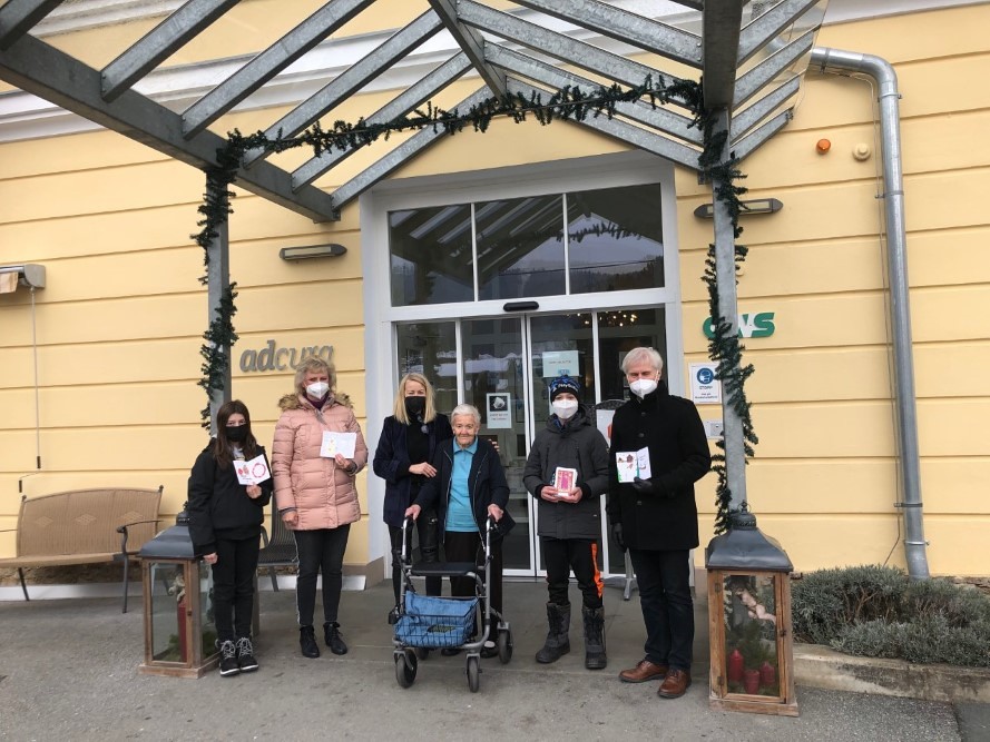 Die Schülerinnen und Schüler der VS Lannach, VS Dobl, MS Premstätten, Priv.-MS Ursulinen, MS Arnfels, MS Leutschach und dem Priv. Gymnasium Ursulinen schrieben und malten liebevoll die Karten für das Caritas Pflegewohnhaus in Lannach, Pflegeheim Amicalis, das Betreute Wohnen und das SeneCura Pflegeheim in Premstätten, das Seniorenresidenz Waldhof Lieboch, das Adcura Seniorenwohnhaus in Arnfels, das Annaheim der Kreuzschwestern und das LKH- Univ.-Klinikum Graz.
